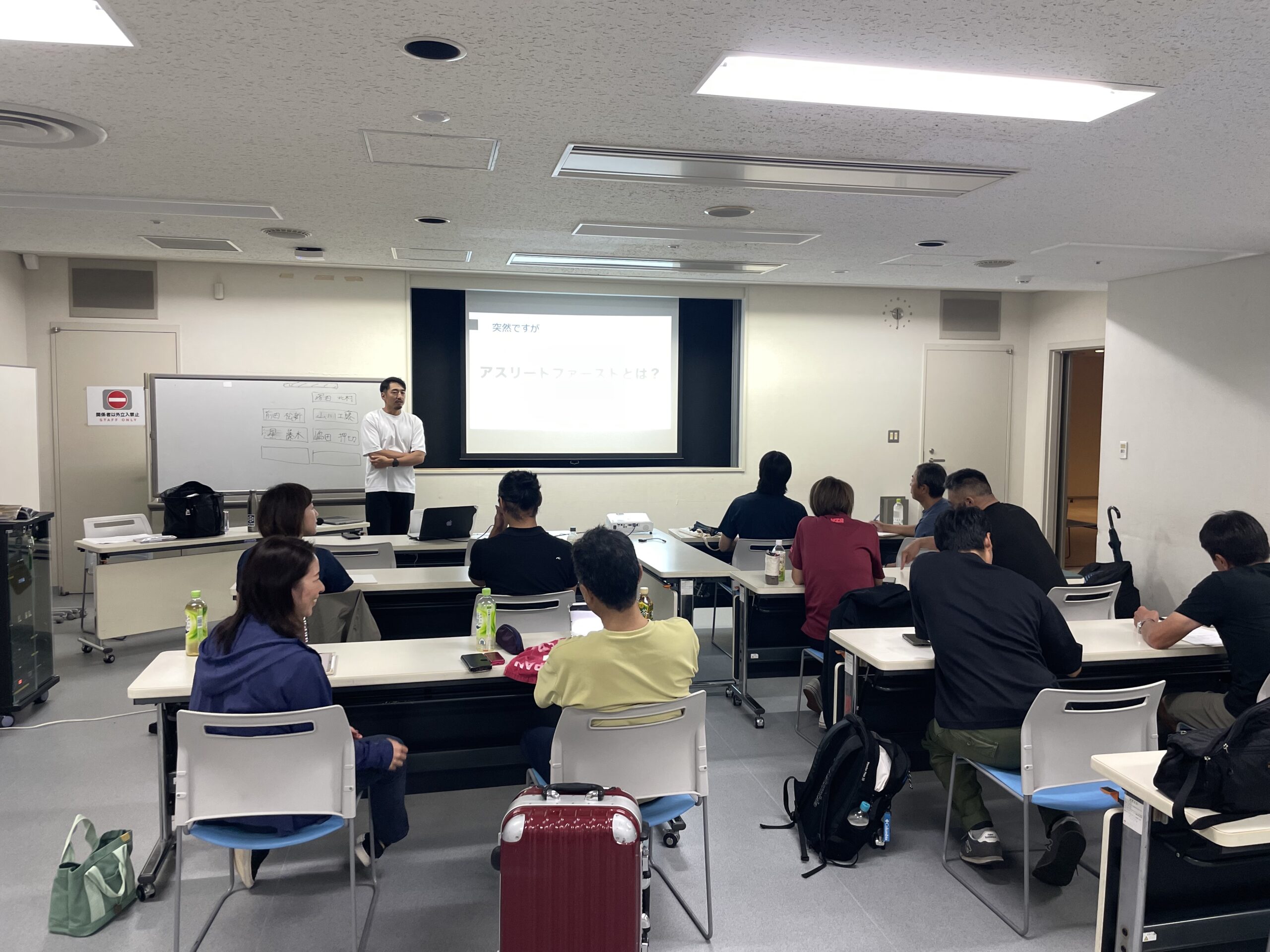 集合講習会の午前中には、横浜市立スポーツ医科学センターにて「コーチング論」「滑走理論の正しい理解と技術指導」を河野恭介氏よりご講義いただきました。